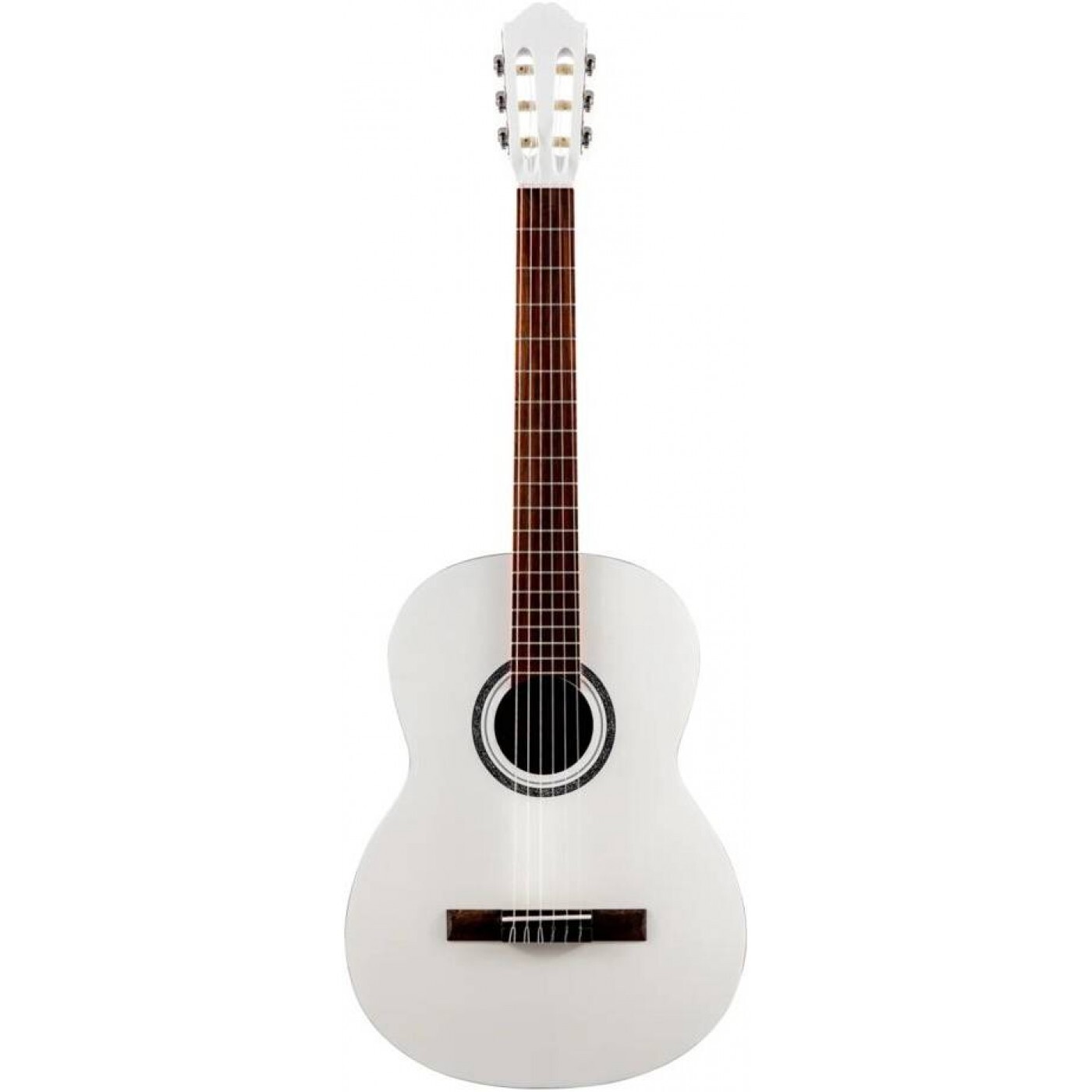 Полноразмерная 4/4 классическая гитара белого цвета с матовой отделкой.