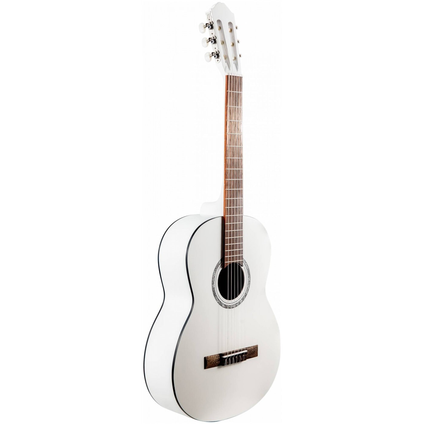 Полноразмерная 4/4 классическая гитара белого цвета с матовой отделкой.