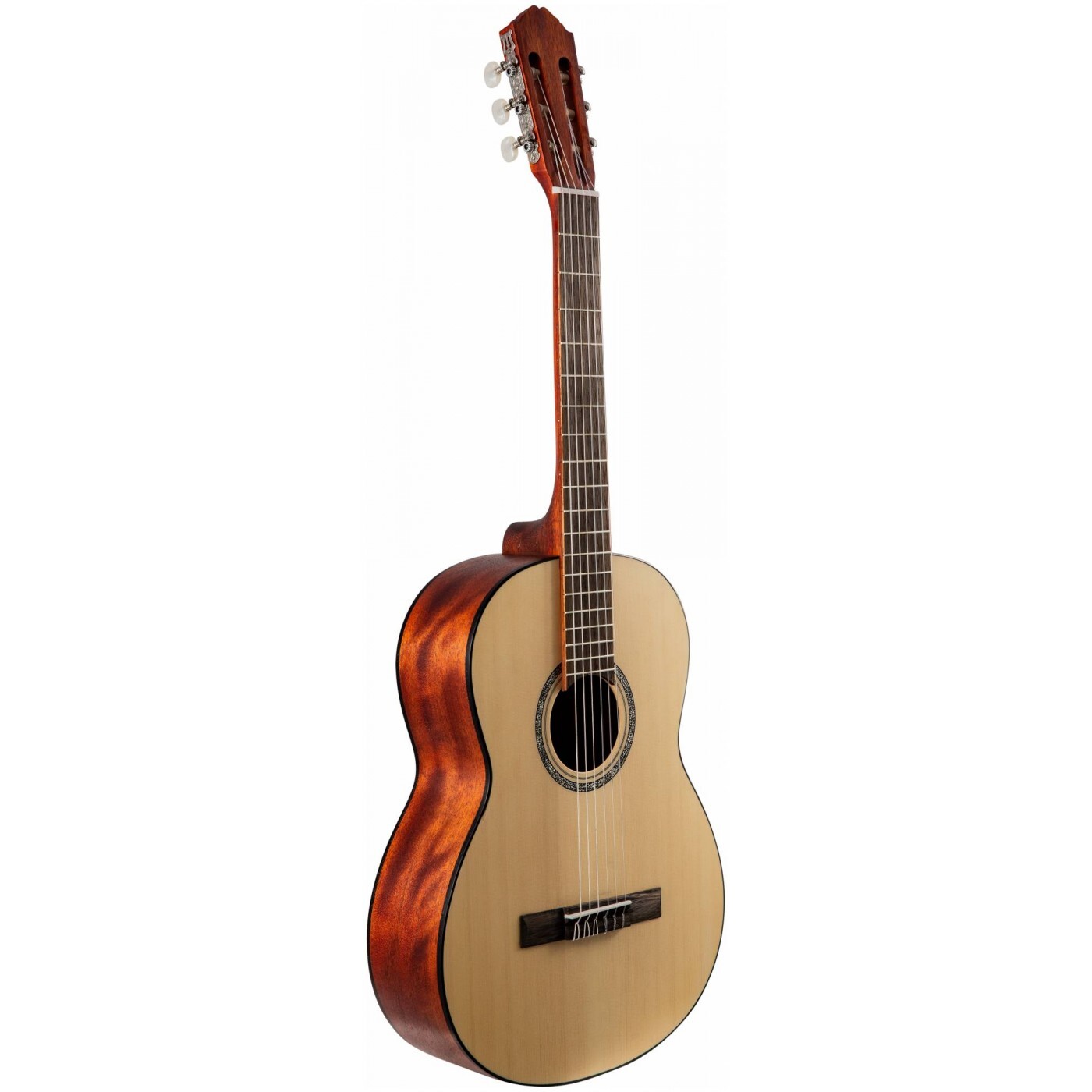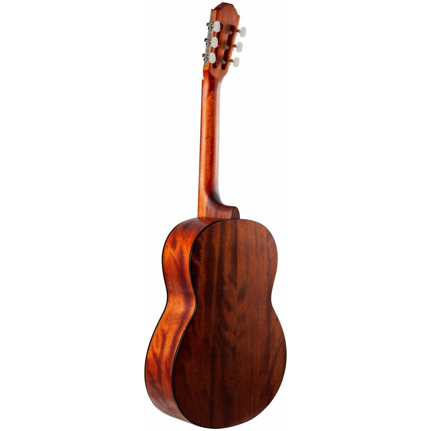 Верхняя дека классической гитары - это один из самых важных компонентов формирования звука инструмента. Ель (наряду с кедром) это традиционная древесина для изготовления качественных профессиональных инструментов. Ель обладает чистым, мелодичным звуком с огромным богатством обертонов. Корпус из красного дерева это также признак качественного инструмента.